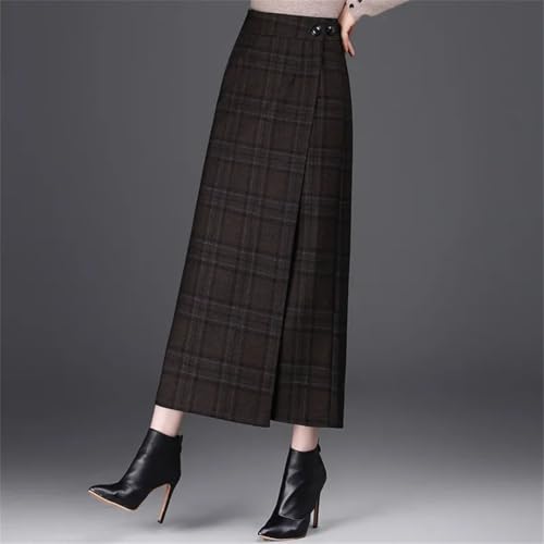 HOT ! Women's High-Waisted Straight-Cut Thickened A-Line Slit Plaid Wool Mini Skirt