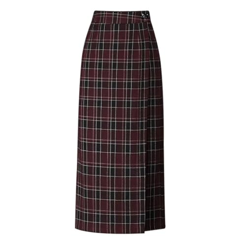 Women's High-Waisted Straight-Cut Thickened A-Line Slit Plaid Wool Mini Skirt 6