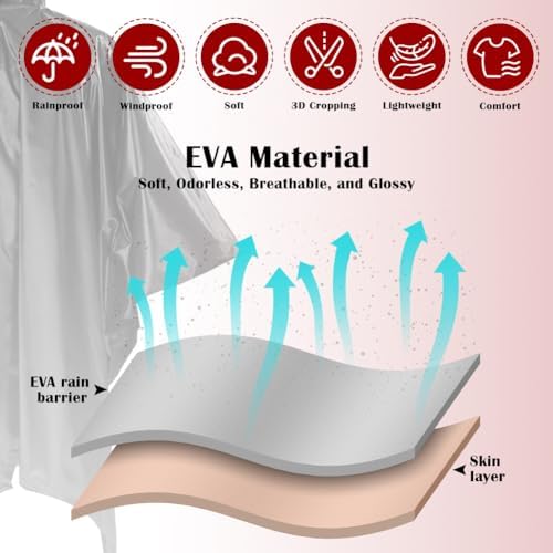 • 【Eco-friendly and Waterproof】:Crafted from environmentally friendly EVA material,this adult rain poncho is 100% waterproof,non-toxic,odorless,and tear-resistant.Stay dry and comfortable in any weather with its drawstring hood for head,face,and neck protection,and side fasteners for a secure fit and dry arms.
