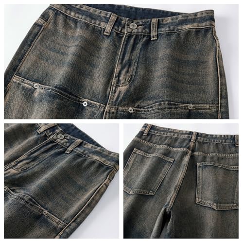More information about Mens Baggy Jeans Casual Wide Leg Straight Button Skater Trousers Vintage Denim Pants