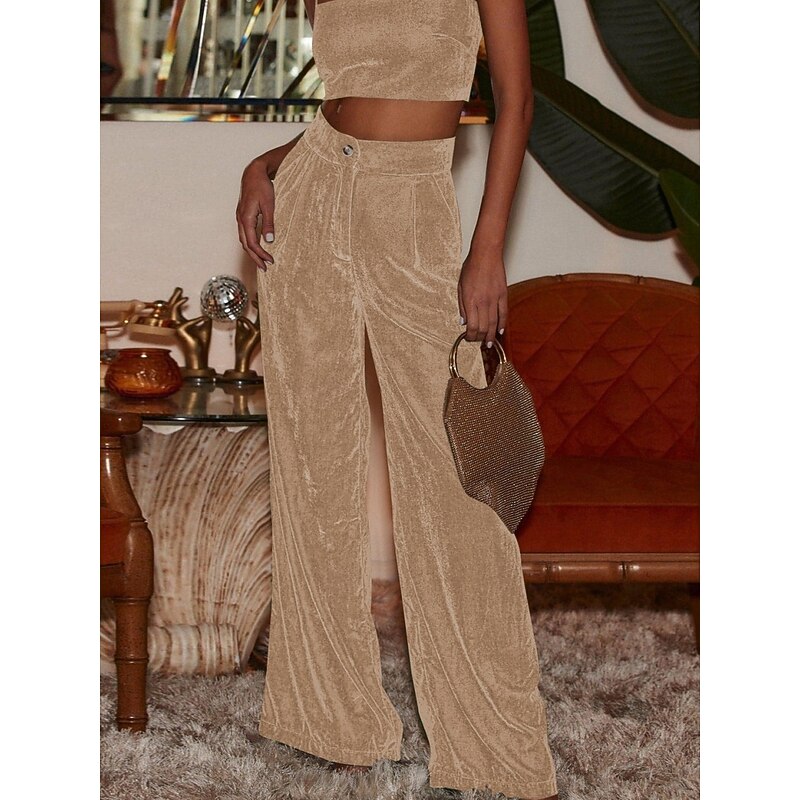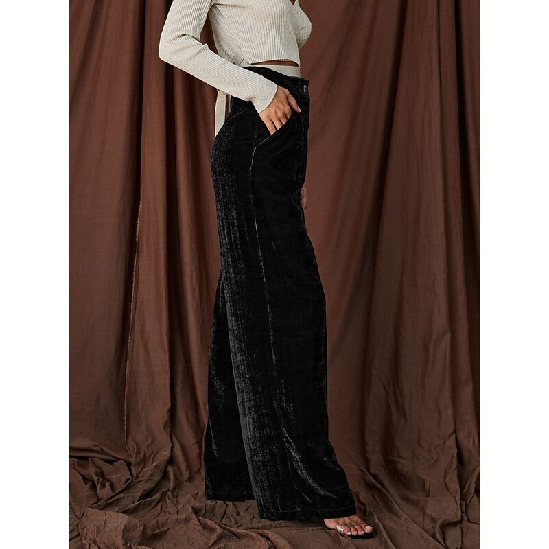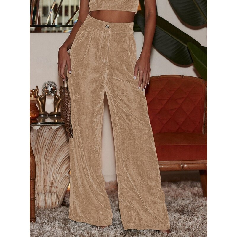 More information about Women's Wide Leg Chinos Fashion Streetwear Full Length High Waist Plain Pocket Comfy Soft Comfortable Micro-elastic Outdoor Street Apricot Red Winter Autumn / Fall Regular Fit
