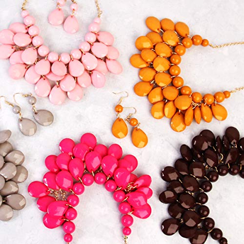 RIAH FASHION Chunky Acrylic Jewel Cluster Floating Bubble Statement Necklace - Teardrop Dangle Layered Bib Collar