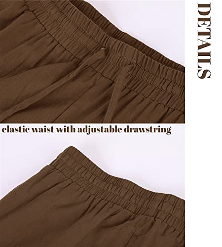 Enjoybuy Men's Linen Drawstring Beach Golf Elastic Waist Spring Long Casual Loose Summer Yoga Cotton Pants, 02-brown, Large 7