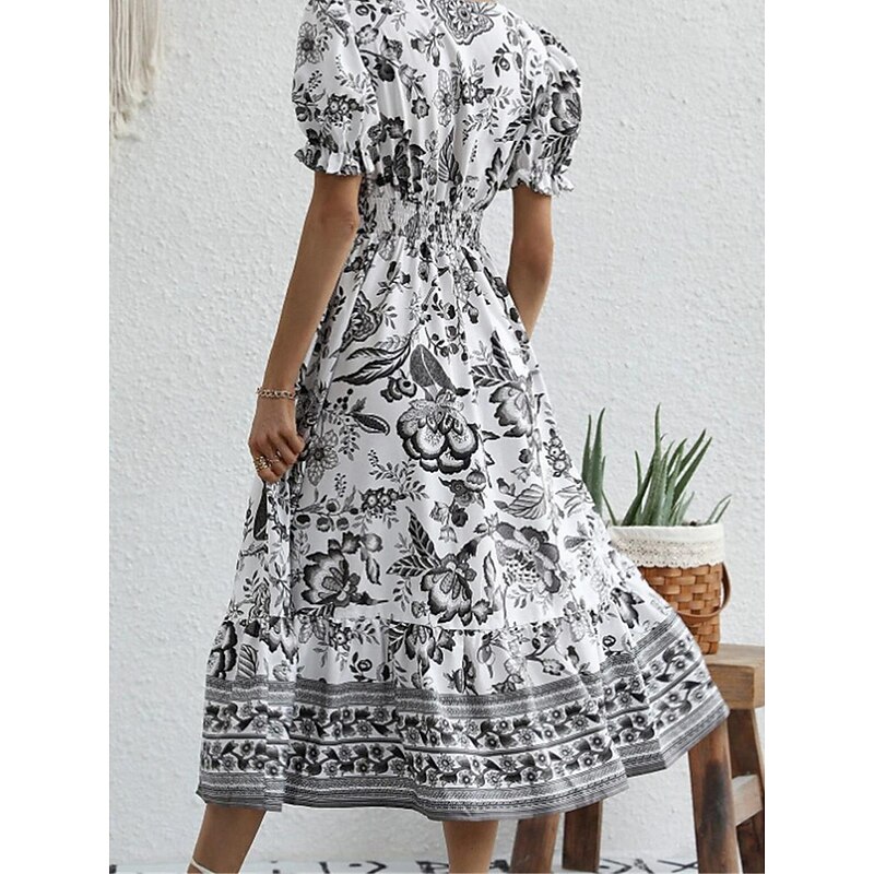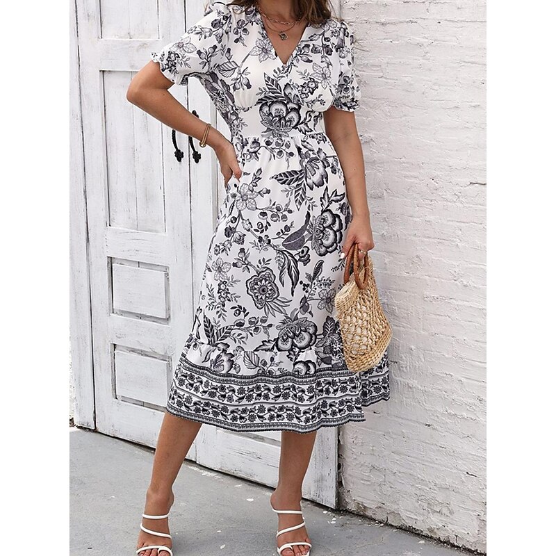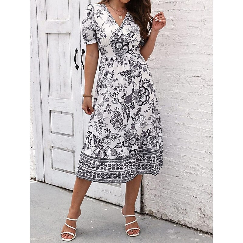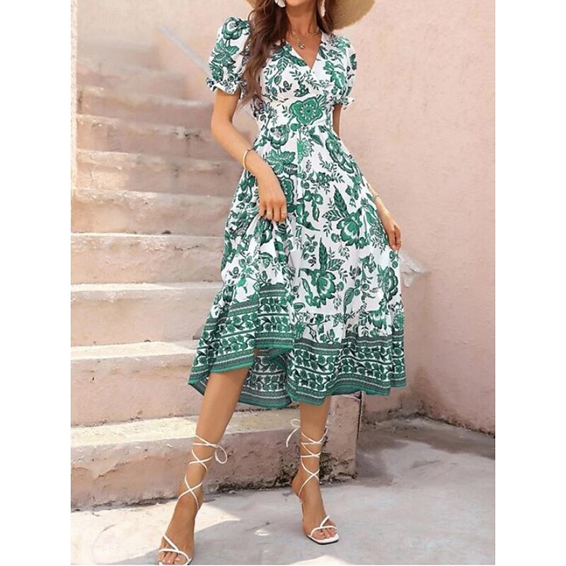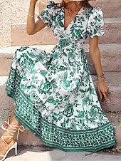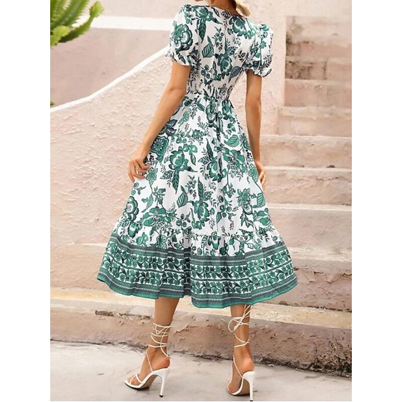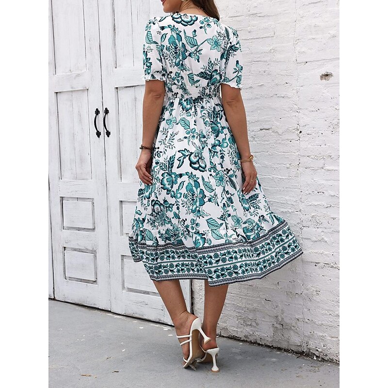 Women's Midi Dress Casual Dress Swing Dress A Line Dress Summer Dress Streetwear A Line Vacation Street Holiday Regular Fit Floral Short Sleeve V Neck Black Red Blue Green Summer