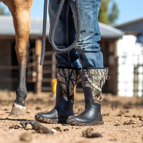 HISEA Upgraded Men's Rain Boots, Waterproof Insulated Neoprene Rubber Boots with Steel Shank, Durable Anti-Slip Outdoor Work Boots for Hunting Gardening Farming Fishing Mud Working, Adjustable Calf 5