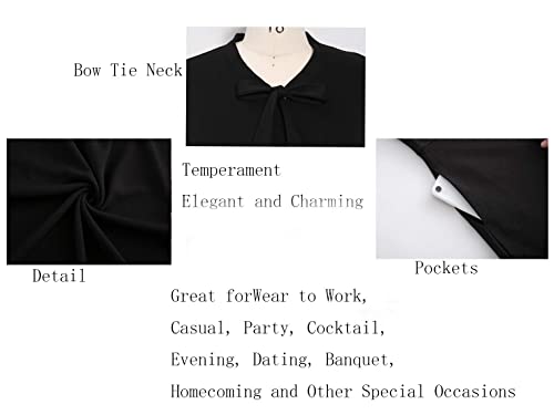 BEDOAR Women's Plus Size Dress Vintage Bow Tie Neck Casual Business Work Knee Length A-line Dresses with Pockets 4