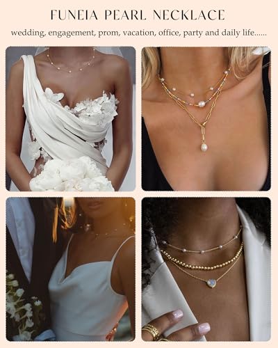 HOT ! FUNEIA Dainty Pearl Necklace for Women 14K Gold Plated Faux Pearl Choker Necklaces Trendy White Silver Small Pearl Necklace Strand Wedding Prom Bridal Pearls Jewelry 14/16/18/20 Inches