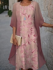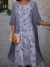 More information about Women's Fashion Streetwear Skirt Sets 3/4 Length Sleeve Crew Neck Plant Lace Print Daily Wear Date Pink Purple Green Spring Regular Fit