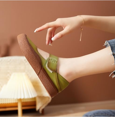 Women's Genuine Leather Flat Bottomed Soft Bottomed Mary Jane Shoes Fashionable and Comfortable Round Toe Low Heel Lightweight Walking Shoes 5