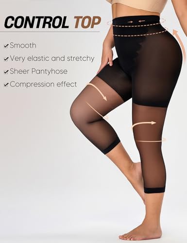 Women's Sheer Footless Tights 20D Microfibre Control Top Pantyhose, Capri Silk Stockings,Medium 6