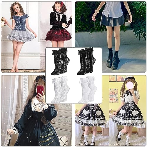 • Womens Ruffle Socks Size & Package: You will get 4 pairs of lace socks for women,including 2 pairs black lace socks and 2 pairs white ruffle socks, enough quantity and classic colors to meet your daily needs for use, replacement, and sharing.Our lacy frilly socks for women girls are one size, which fits women US shoe sizes 5-11 and most US women and teen girls. Good elasticity brings you enjoyable wearing experiences and you can stretch them to reach the length you need