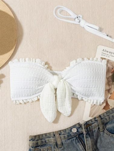 More information about Women's Bathing Suit Knot Front Frill Trim Bandeau Swimsuit Bikini Top