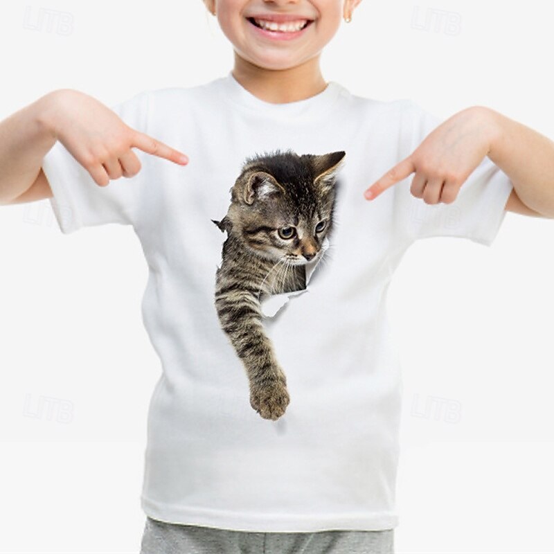 100% Cotton Kids Girls' 1 2 3 Animal Cat T shirt Tee Crew Neck Short Sleeve Outdoor Vacation Daily Classic Casual Print Summer 8