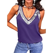 More information about Women's Camisole Tank Top Streetwear Metallic Casual Sparkly Sequins Sleeveless Regular Tops V Neck Party Holiday Weekend Black Red Blue Purple
