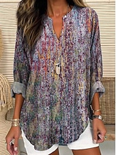 More information about Women's Blouse Tunic V Neck Long Sleeve Boho Casual Graphic Paisley Vintage Tropical Regular Tops Daily Wear Print Red Blue Green
