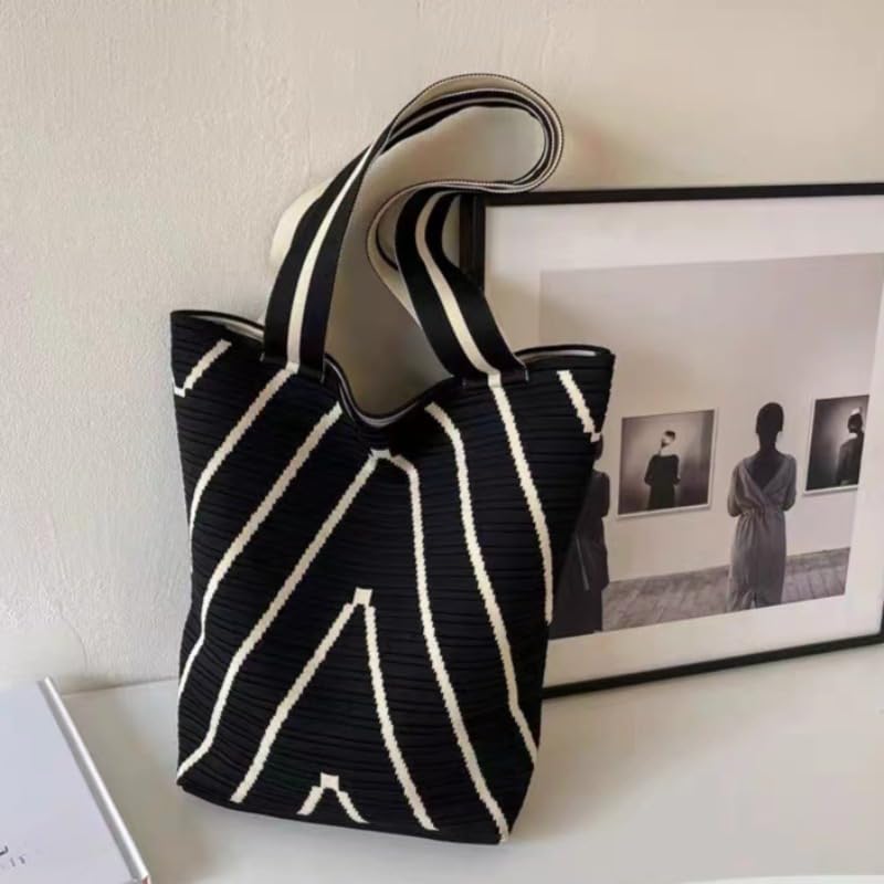 HOT ! Tote Bag for Women Large Capacity Striped Knitted Shoulder Bag, Stylish and Durable Tote for Phones, Wallets, and Essentials