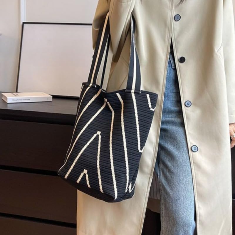 More information about Tote Bag for Women Large Capacity Striped Knitted Shoulder Bag, Stylish and Durable Tote for Phones, Wallets, and Essentials