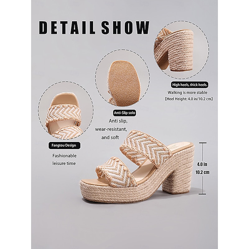 Women's Platform Woven Strap Sandals with Chunky Heel - Casual Boho-Style Summer Slide Shoes for Daily Dates and Outings 8