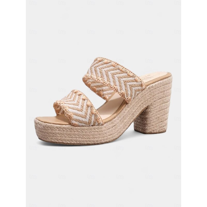 Women's Platform Woven Strap Sandals with Chunky Heel - Casual Boho-Style Summer Slide Shoes for Daily Dates and Outings 1