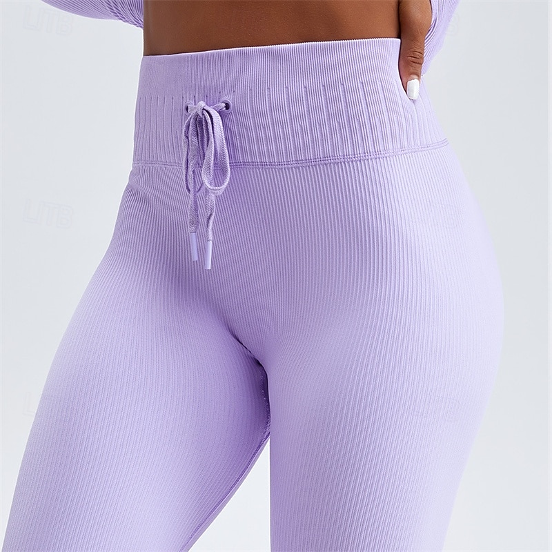 More information about Women's Yoga Pants Yoga Leggings Drawstring Ribbed Butt Lift Tummy Control High Waist Pilates Gym Workout Workout Tights Solid Color Yellow Purple Green Spandex Fall Sports Activewear Stretchy Skinny