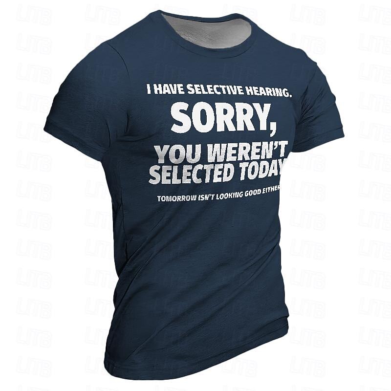 More information about Men's Graphic I Have Selective Hearing Sorry You Weren't Selected Today T Shirt Short Sleeve T shirt 3D Print Crew Neck Shirt Daily Designer Casual Sports Outdoor Holiday Going out Black Navy Blue