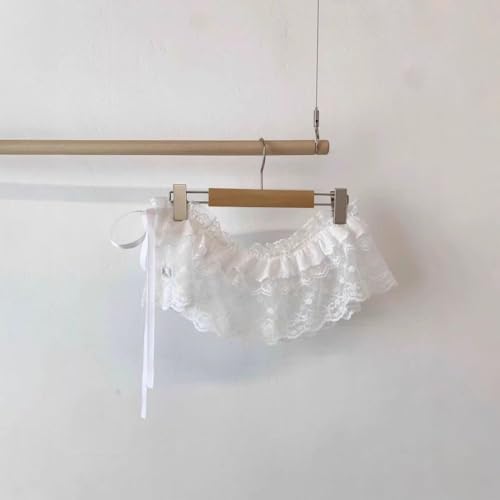 sought-after ! Ruched Skirts Harajuku Embroidered Flower Lace Mini Skirt See Through Butt Curtain Jeans Decoration(White)