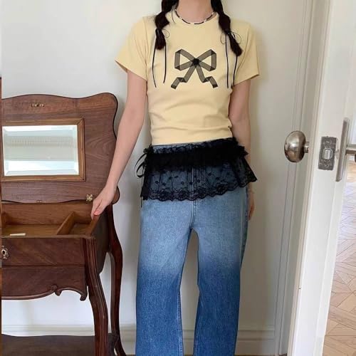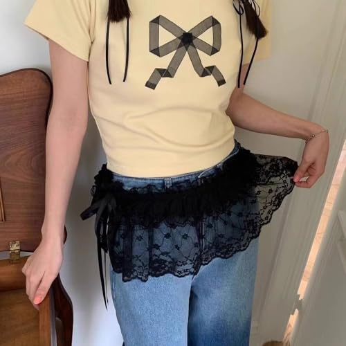 More information about Ruched Skirts Harajuku Embroidered Flower Lace Mini Skirt See Through Butt Curtain Jeans Decoration(White)