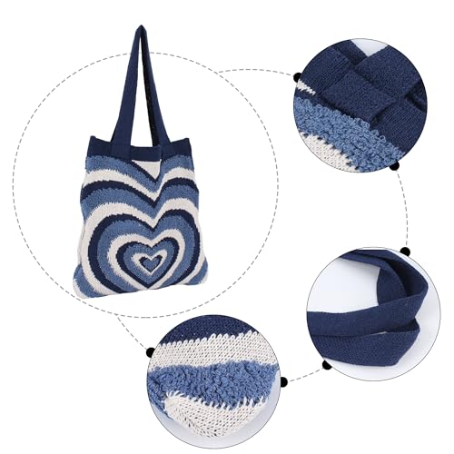 ZLM BAG US Women Crochet Shoulder Handbag Open Top Tote Bag Knitted Heart Stripe Hobo Purse Handmade Shopper Grocery Bag 3