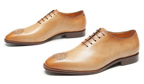 Santimon Men's Genuine Leather Oxfords Formal Dress Shoes- Handmade Pointed Toe Lace Up Suit Shoes with Vintage Floral Engraving for Business Prom Wedding 6