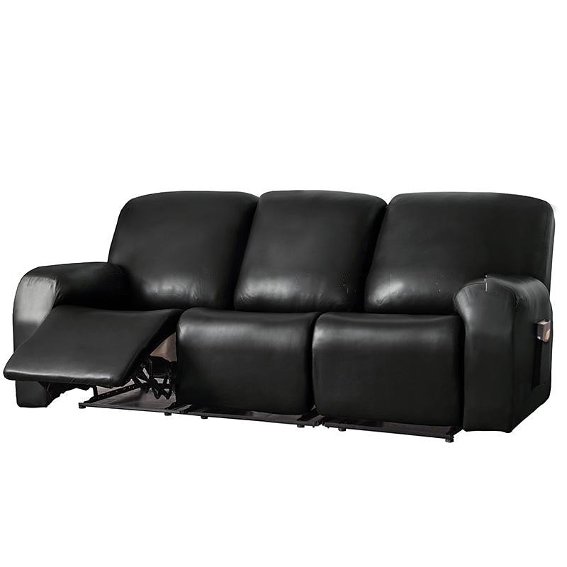 100% Waterproof 3 Seater Recliner Sofa Cover Stretch Pu Leather Black Grey High Elastic Couch Slipcover 3 Seats Cushion Reclining Furniture Protector 7