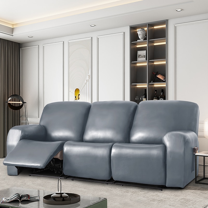 100% Waterproof 3 Seater Recliner Sofa Cover Stretch Pu Leather Black Grey High Elastic Couch Slipcover 3 Seats Cushion Reclining Furniture Protector 8