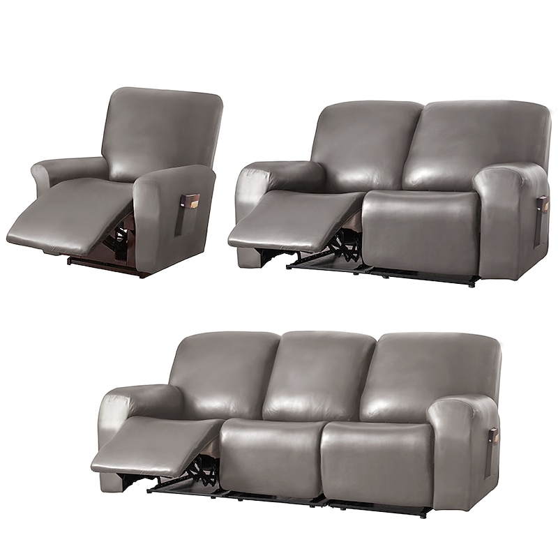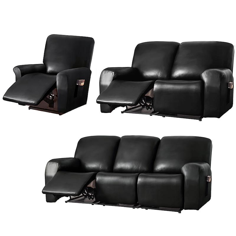 100% Waterproof 3 Seater Recliner Sofa Cover Stretch Pu Leather Black Grey High Elastic Couch Slipcover 3 Seats Cushion Reclining Furniture Protector 4