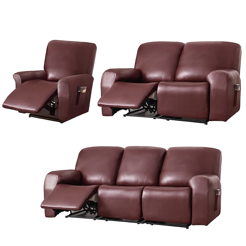 100% Waterproof 3 Seater Recliner Sofa Cover Stretch Pu Leather Black Grey High Elastic Couch Slipcover 3 Seats Cushion Reclining Furniture Protector 22