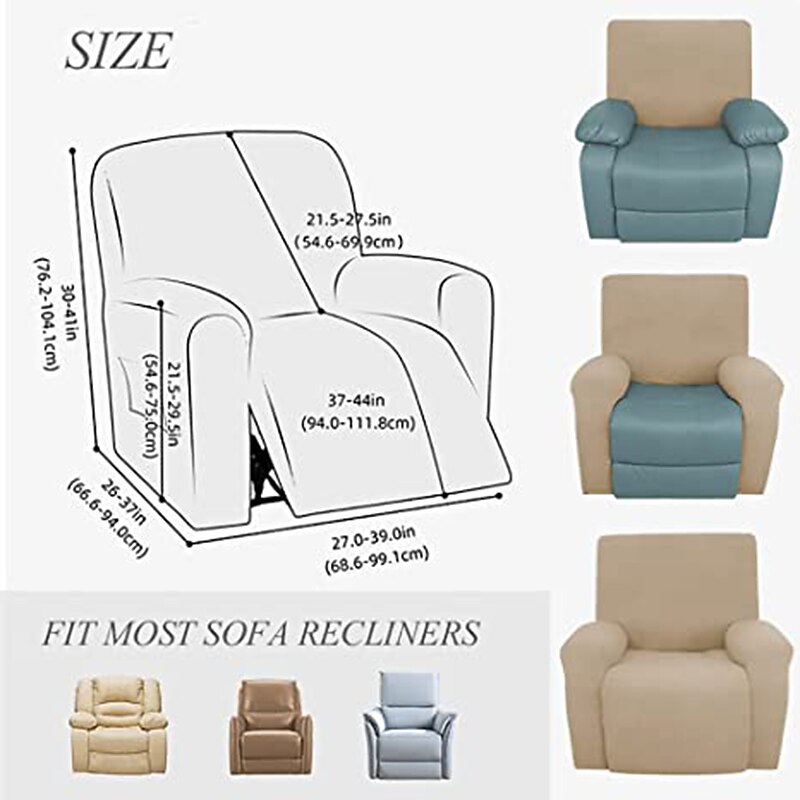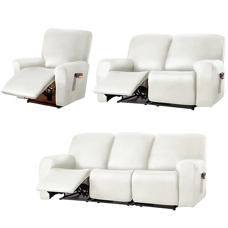 100% Waterproof 3 Seater Recliner Sofa Cover Stretch Pu Leather Black Grey High Elastic Couch Slipcover 3 Seats Cushion Reclining Furniture Protector 19