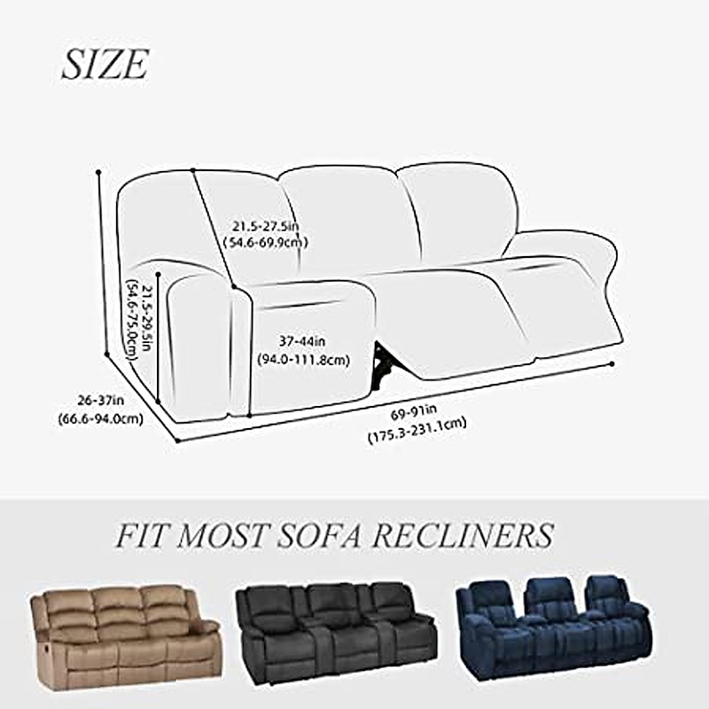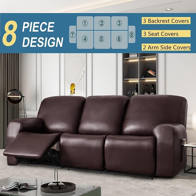 100% Waterproof 3 Seater Recliner Sofa Cover Stretch Pu Leather Black Grey High Elastic Couch Slipcover 3 Seats Cushion Reclining Furniture Protector 10