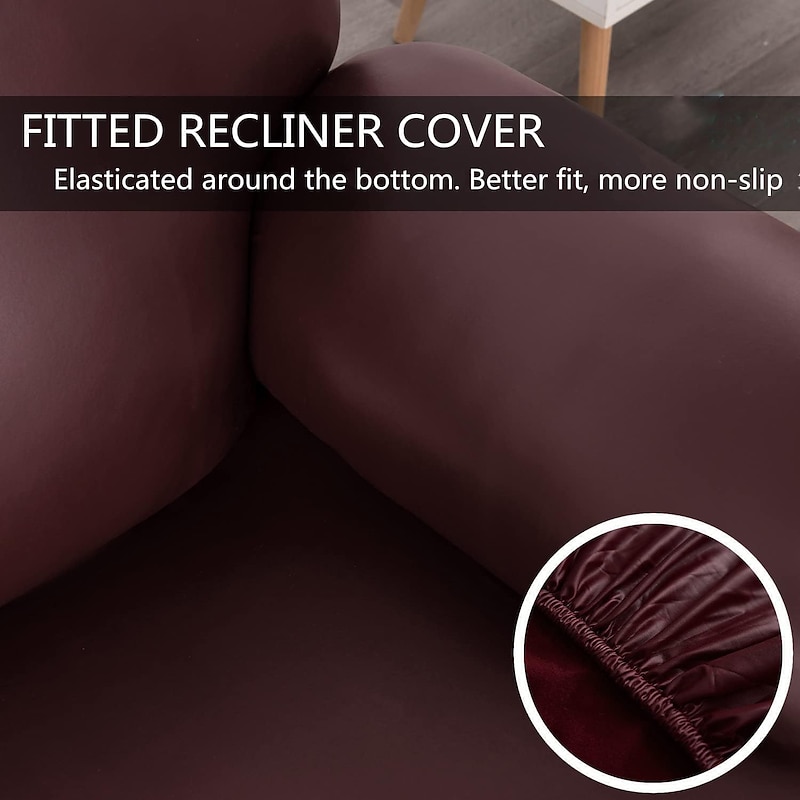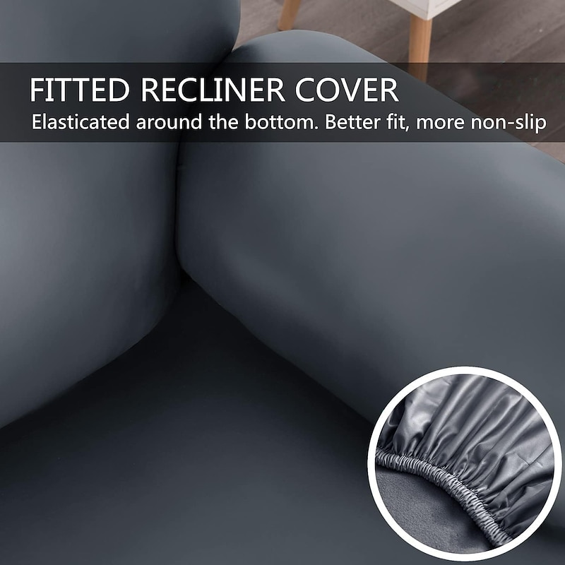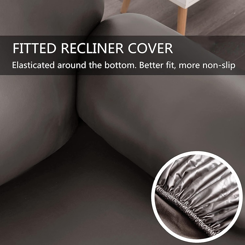 100% Waterproof 3 Seater Recliner Sofa Cover Stretch Pu Leather Black Grey High Elastic Couch Slipcover 3 Seats Cushion Reclining Furniture Protector 11