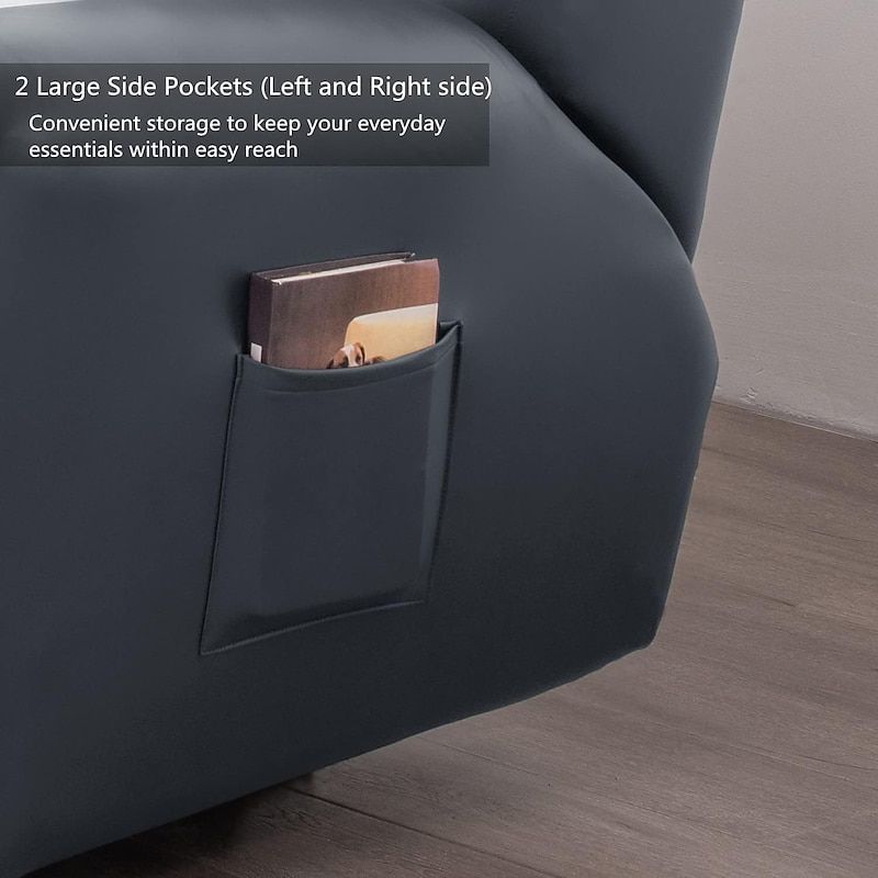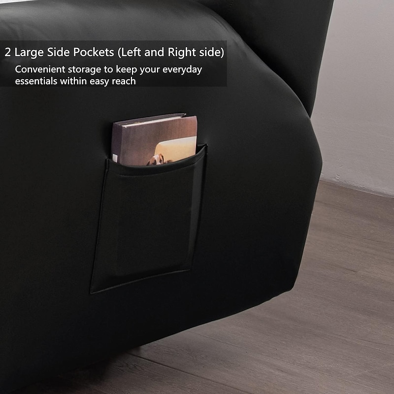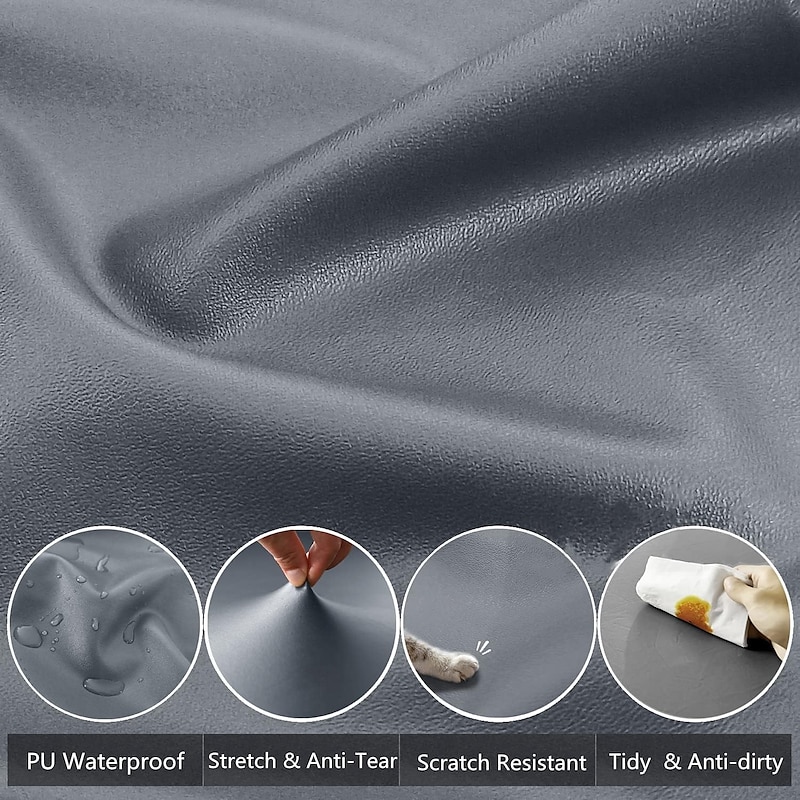 100% Waterproof 3 Seater Recliner Sofa Cover Stretch Pu Leather Black Grey High Elastic Couch Slipcover 3 Seats Cushion Reclining Furniture Protector 14