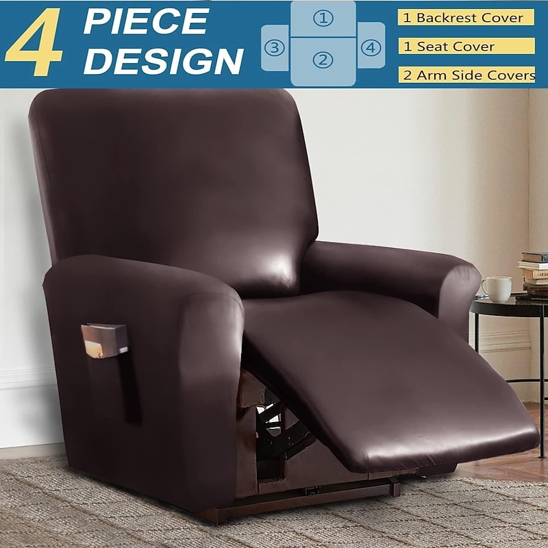 100% Waterproof 3 Seater Recliner Sofa Cover Stretch Pu Leather Black Grey High Elastic Couch Slipcover 3 Seats Cushion Reclining Furniture Protector 20