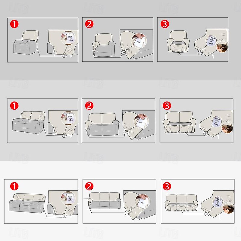 Highlights About this item: 1. PERFECT FIT: There are 4 different Pieces for 1 Seater, 6 different Pieces for 2 Seater, 8 different Pieces for 3 Seater. 2. WATERPROOF: 100% Waterproof stretchy fabric, soft and comfortable, Protect your sofa from daily wear and stains. Various colors are prepared, you can choose the color you like to cover. 3. EASY TO INSTALL: Check the installation guide carefully, it can be finished within 12 minutes by one person easily. 4. EASY CARE: Machine washable, wash at temperature around 30 degrees Celsius, mild laundry detergents are advised, please do not bleach, do not iron. 5. SLIGHT COLOR NOTE: Please note that slight color difference should be acceptable due to the light and screen. WATERPROOF DETAILS EASY CARE SLIGHT COLOR NOTE