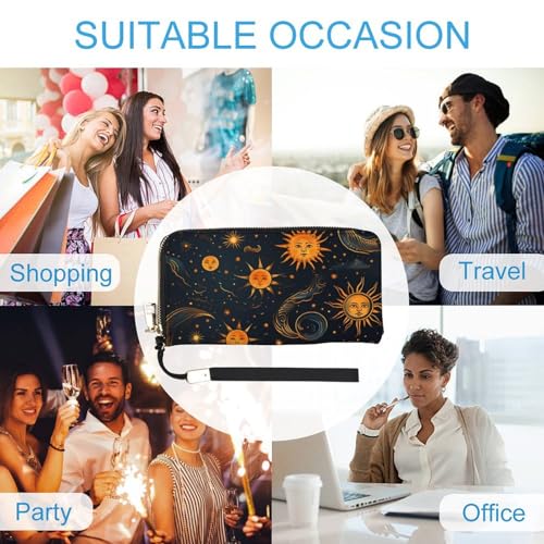 Bohemian Sun Leather Wallet Fashion Bifold Purse Long Pouch with Wrist Strap for Men Women 6