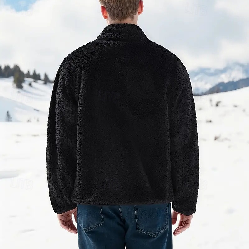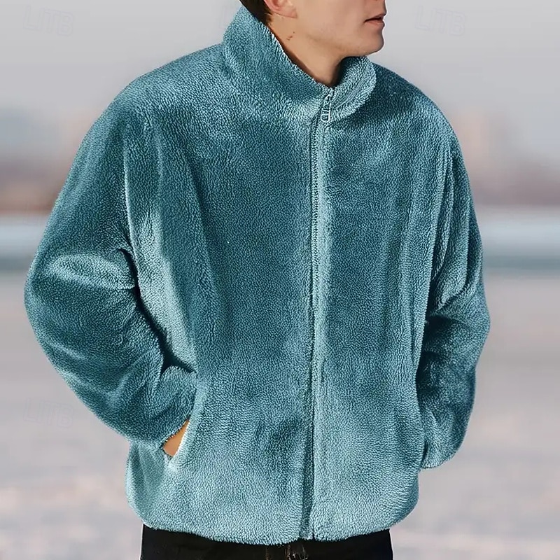More information about Men's Winter Jacket Fleece Jacket Teddy Coat Vacation Daily Thermal Warm Pocket Fleece Winter Plain Fashion Streetwear Stand Collar Regular Black Blue Dark Blue Gray Jacket