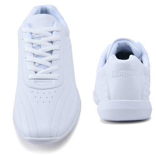 • BREATHABLE WHITE CHEERLEADER SHOES: Featuring a breathable tight-weaved mesh upper and micorfiber leather to keep your feet cool and comfortable during strenuous cheerleading practices.