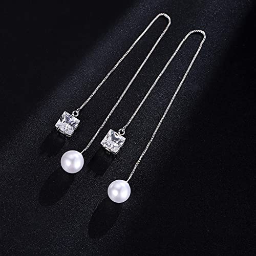 HOT ! BG&WLing Pearl Sterling Silver Threader Earrings for Women Hypoallergenic White Green Square Rhinestone Crystal Long Tassel Earrings Dangling Fashion Jewelry