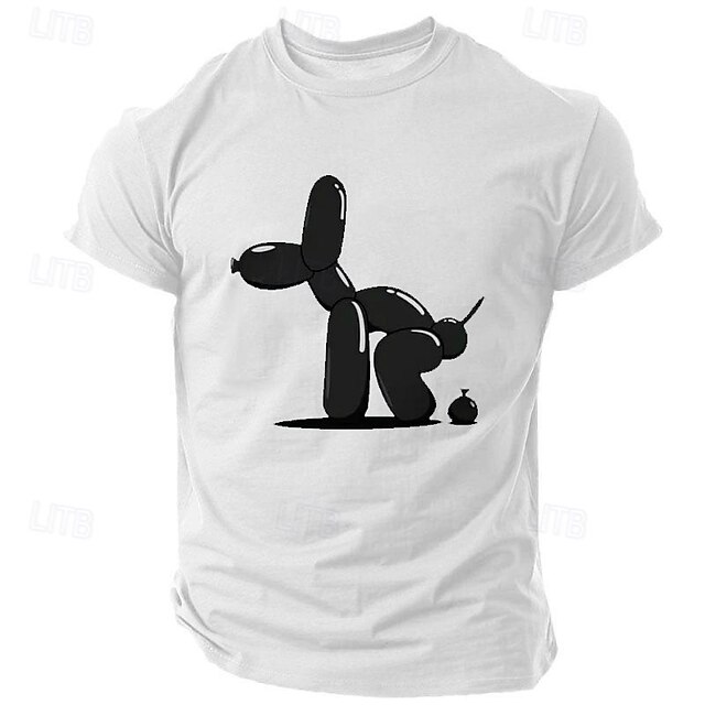 HOT ! Men's Funny Pooping Balloon Dog Graphic T-Shirt Short Sleeve Novelty Tee