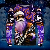 More information about Christmas Men's Santa Claus Music Christmas Pattern T Shirt Funny T Shirts Long Sleeve T shirt 3D Print Crew Neck Shirt Daily Outdoor Casual Party Casual Holiday Black Purple Green Spring & Fall