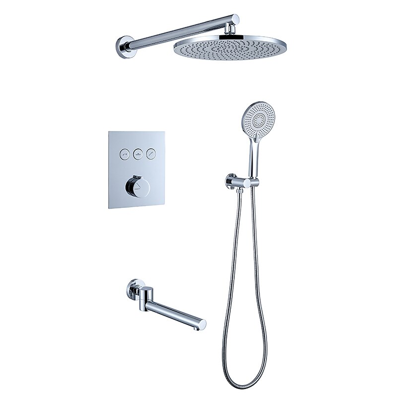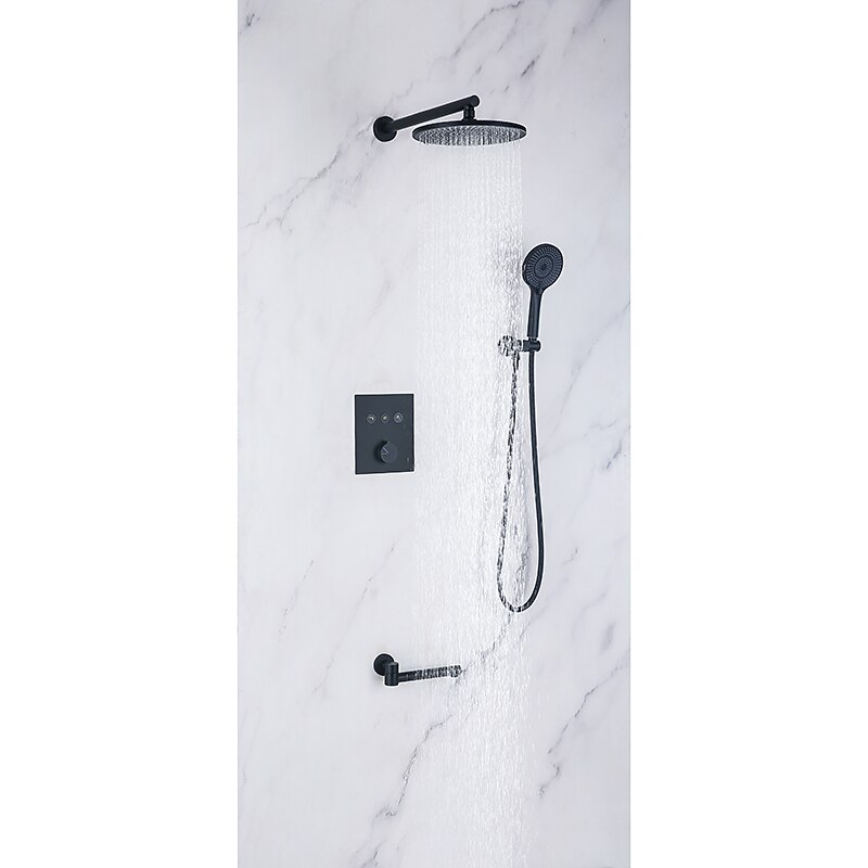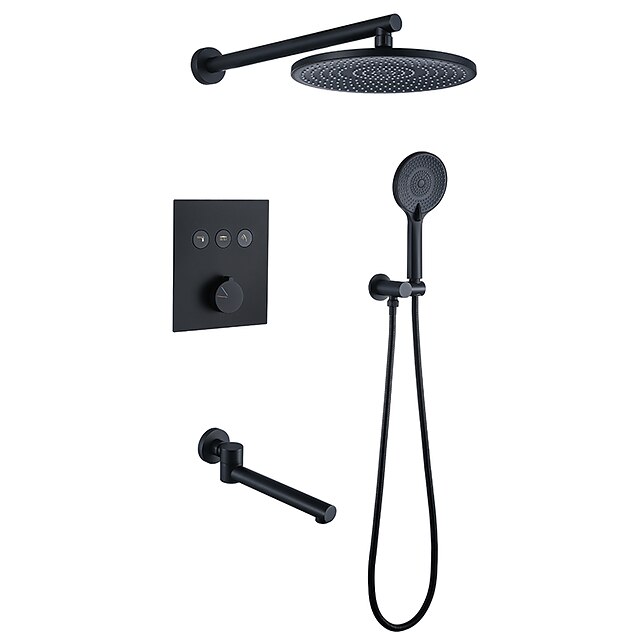 More information about 10 Inch Round Shower Faucets Sets,3-Function Matte Black / Chrome Complete with Brass Shower Head and Solid Brass Handshower Mount Inside Rainfall Shower Head System