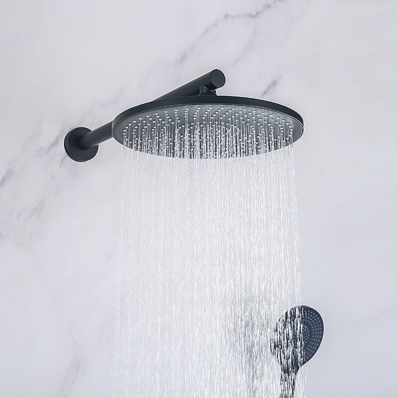 10 Inch Round Shower Faucets Sets,3-Function Matte Black / Chrome Complete with Brass Shower Head and Solid Brass Handshower Mount Inside Rainfall Shower Head System 12