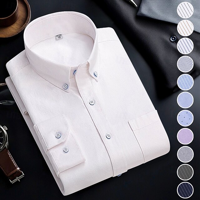 Men's Dress Shirt Button Down Shirt Oxford Shirt Non Iron Shirt Striped Shirt Plaid / Striped / Chevron / Round Wedding Office & Career Light Blue White Navy Blue Royal Blue Long Sleeve Shirt Collar 23