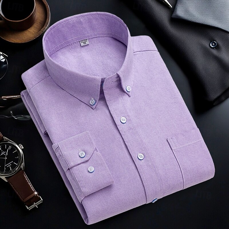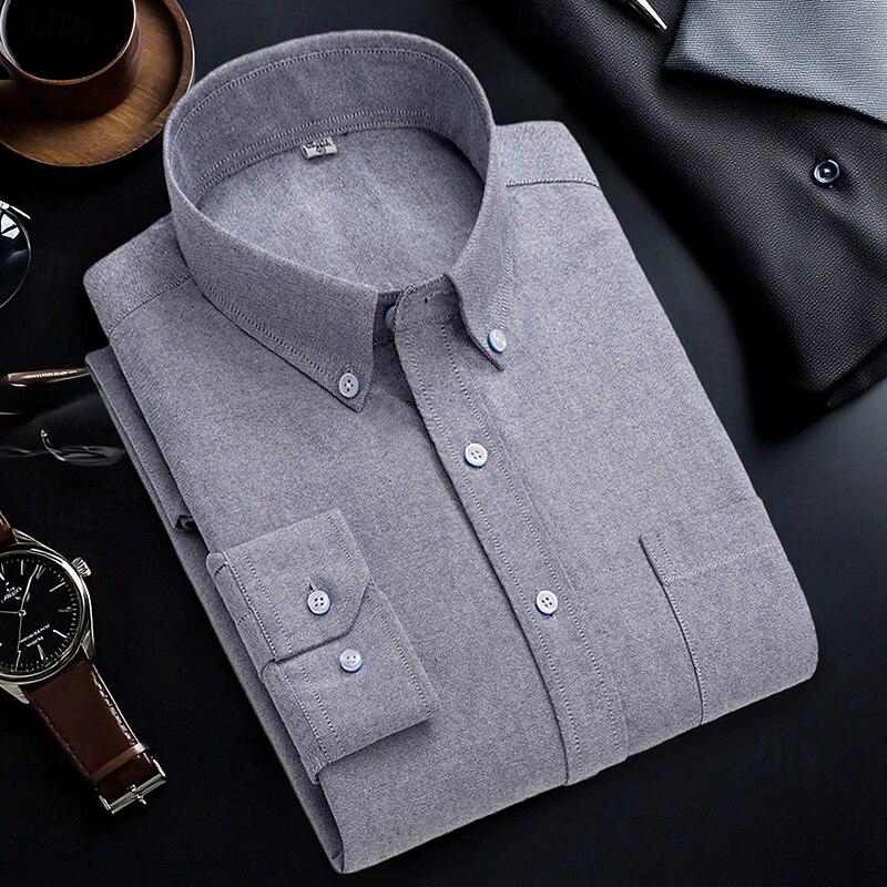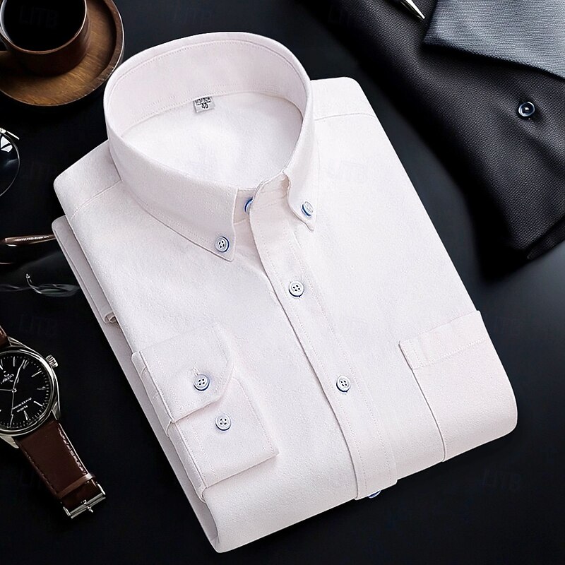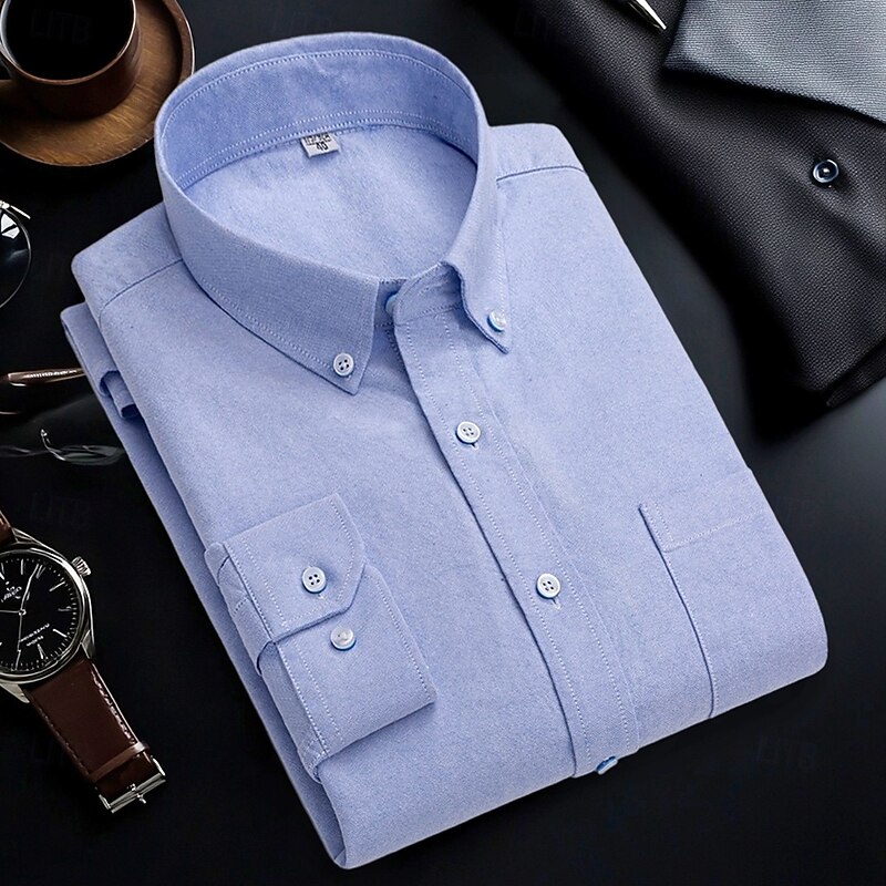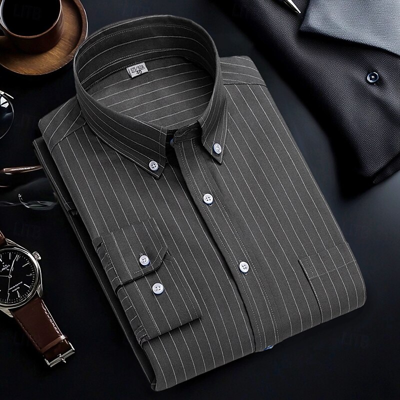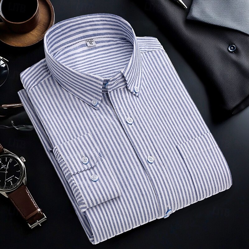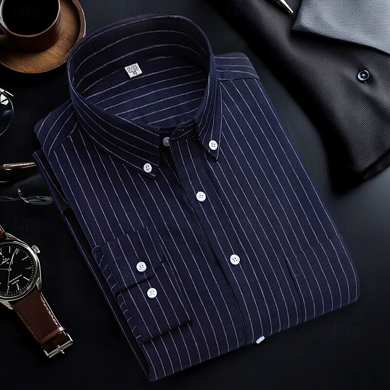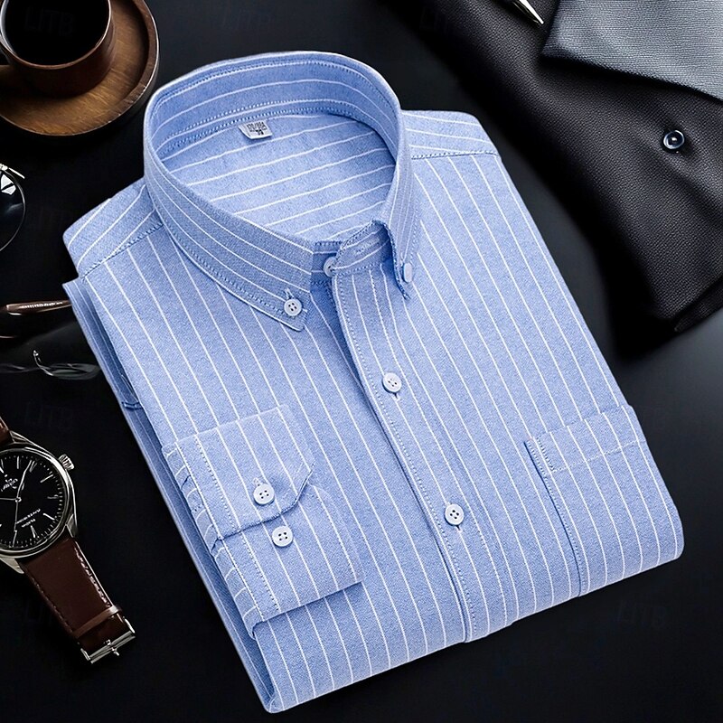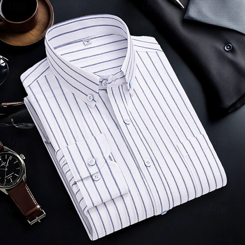 More information about Men's Dress Shirt Button Down Shirt Oxford Shirt Non Iron Shirt Striped Shirt Plaid / Striped / Chevron / Round Wedding Office & Career Light Blue White Navy Blue Royal Blue Long Sleeve Shirt Collar