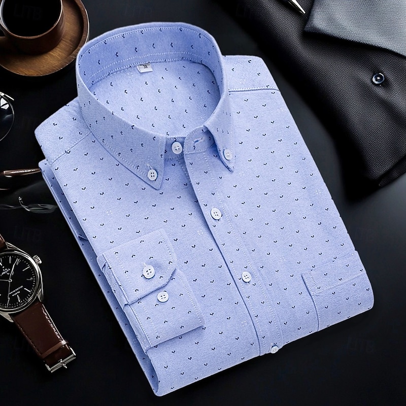 HOT ! Men's Dress Shirt Button Down Shirt Oxford Shirt Non Iron Shirt Striped Shirt Plaid / Striped / Chevron / Round Wedding Office & Career Light Blue White Navy Blue Royal Blue Long Sleeve Shirt Collar